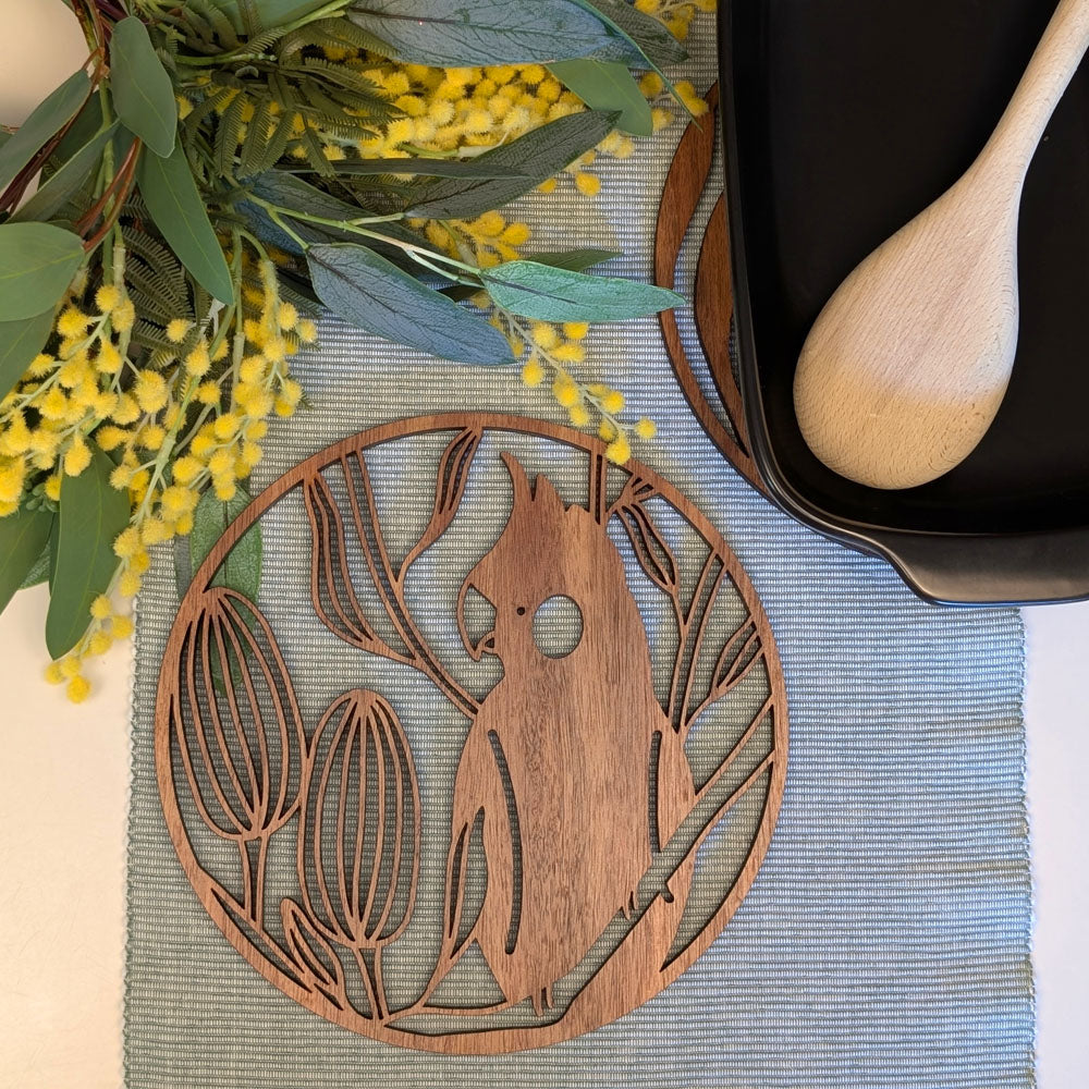 Black Cockatoo: Australian Wooden Trivet / Pot Stand (Large)