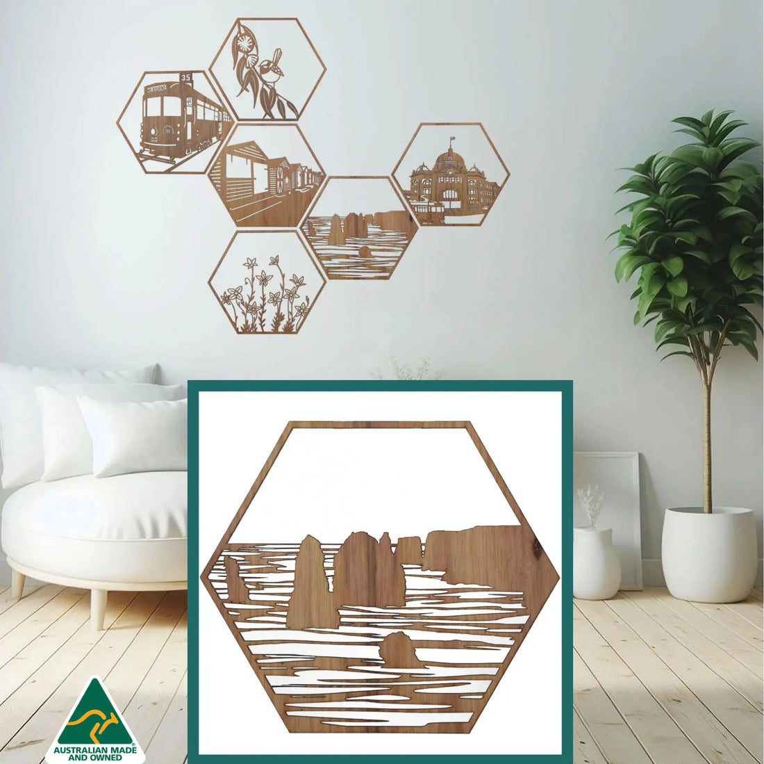 12 Apostles Great Ocean Road: Australian Timber Hexagon Wall Art
