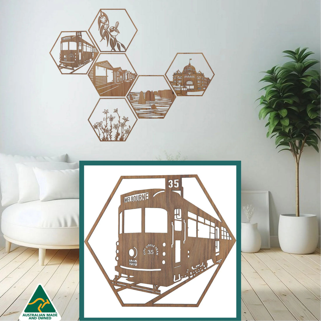 Melbourne Tram: Australian Timber Hexagon Wall Art