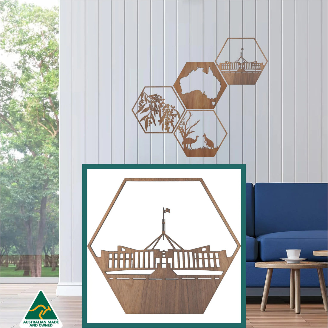 Parliament House Canberra: Australian Timber Hexagon Wall Art