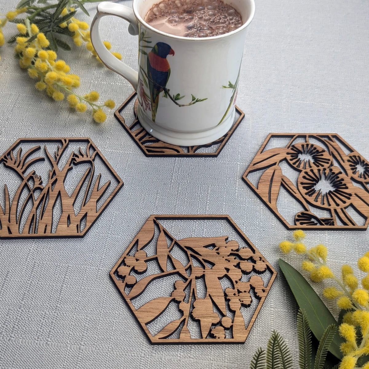 - Of Course, that is what they are made for! Our coasters and trivets have specifically been designed to support hot items. for best results, wipe with a damp cloth as needed. Avoid exposure to water for long periods of time. Do not submerge any of our products.