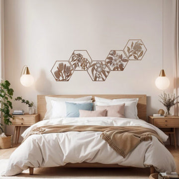These Hexagon art pieces are crafted by Straya Art in Australia using uncoated local Australian hardwood laser-ply which is laser cut into artistic designs inspired by Australian landscapes, architecture, culture, flora and fauna.