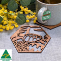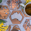 Our Australian Wooden Coasters are inspired by Australian outback, coasts, animals, birds and flowers intricately cut using premium Australian hardwood.