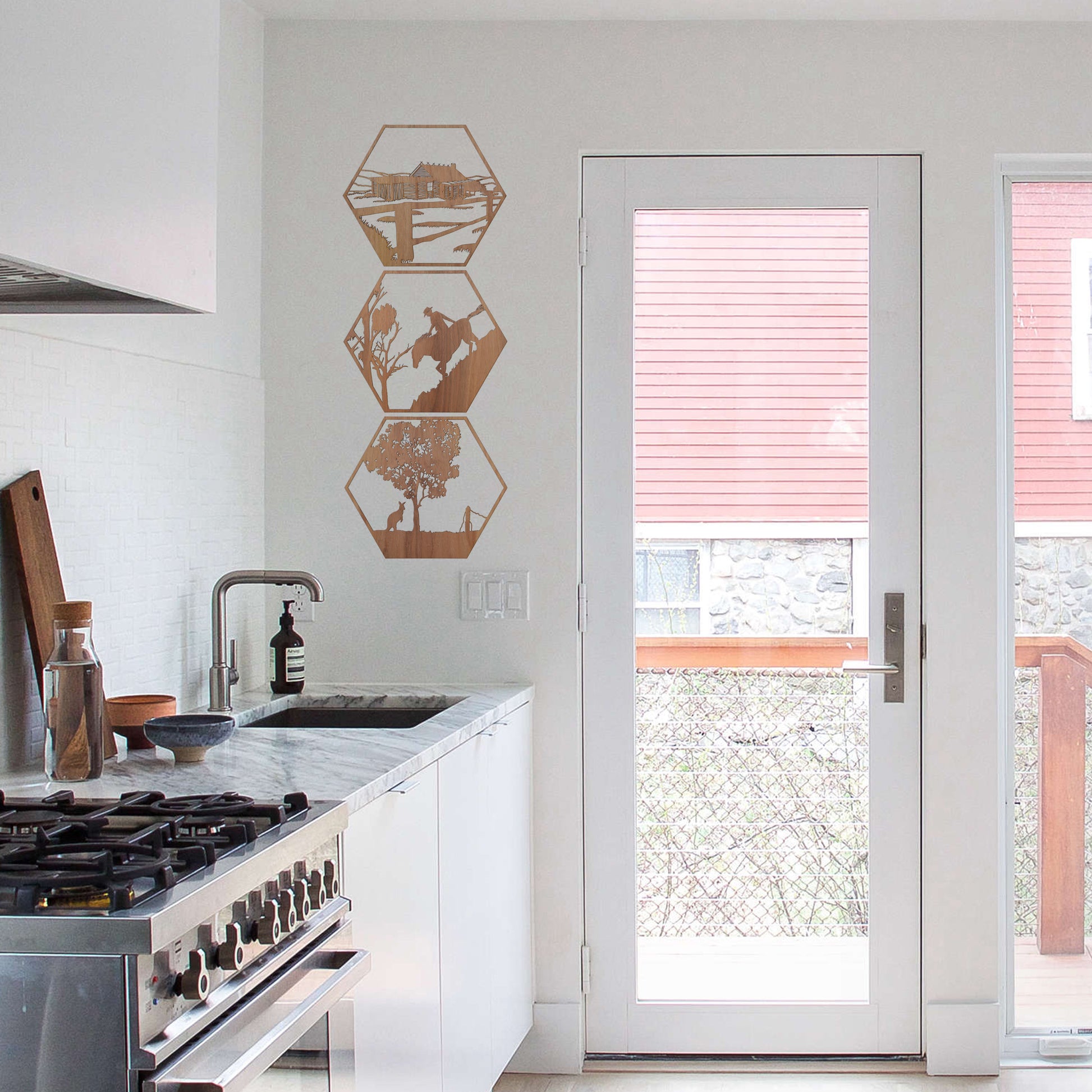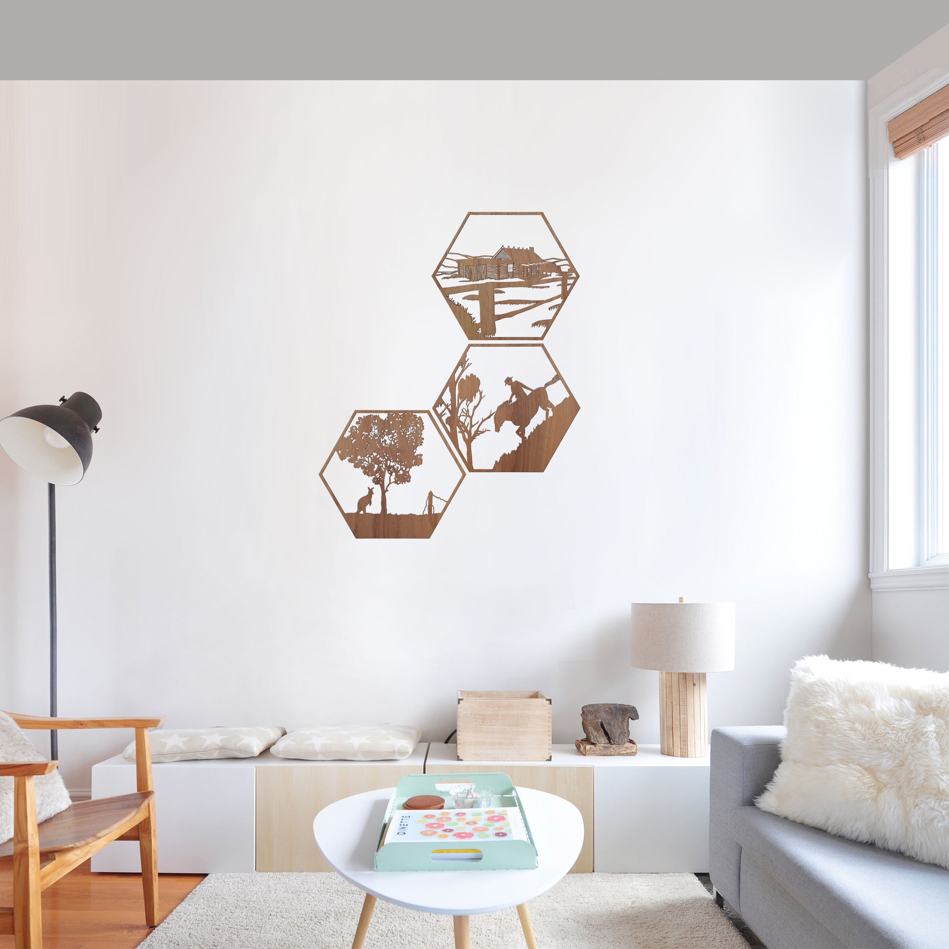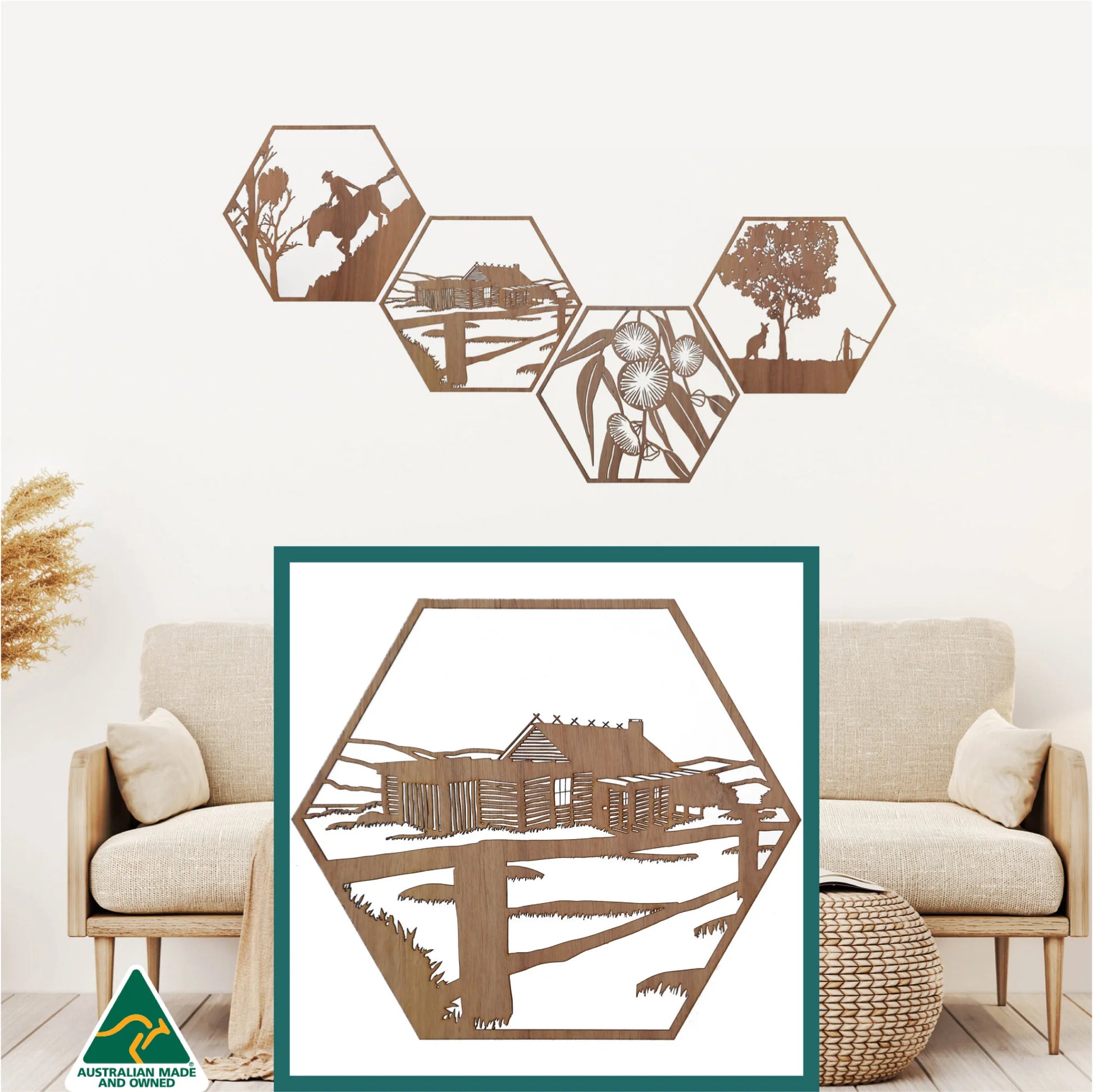 Craigs Hut, Snowy River: Australian Timber Hexagon Wall Art