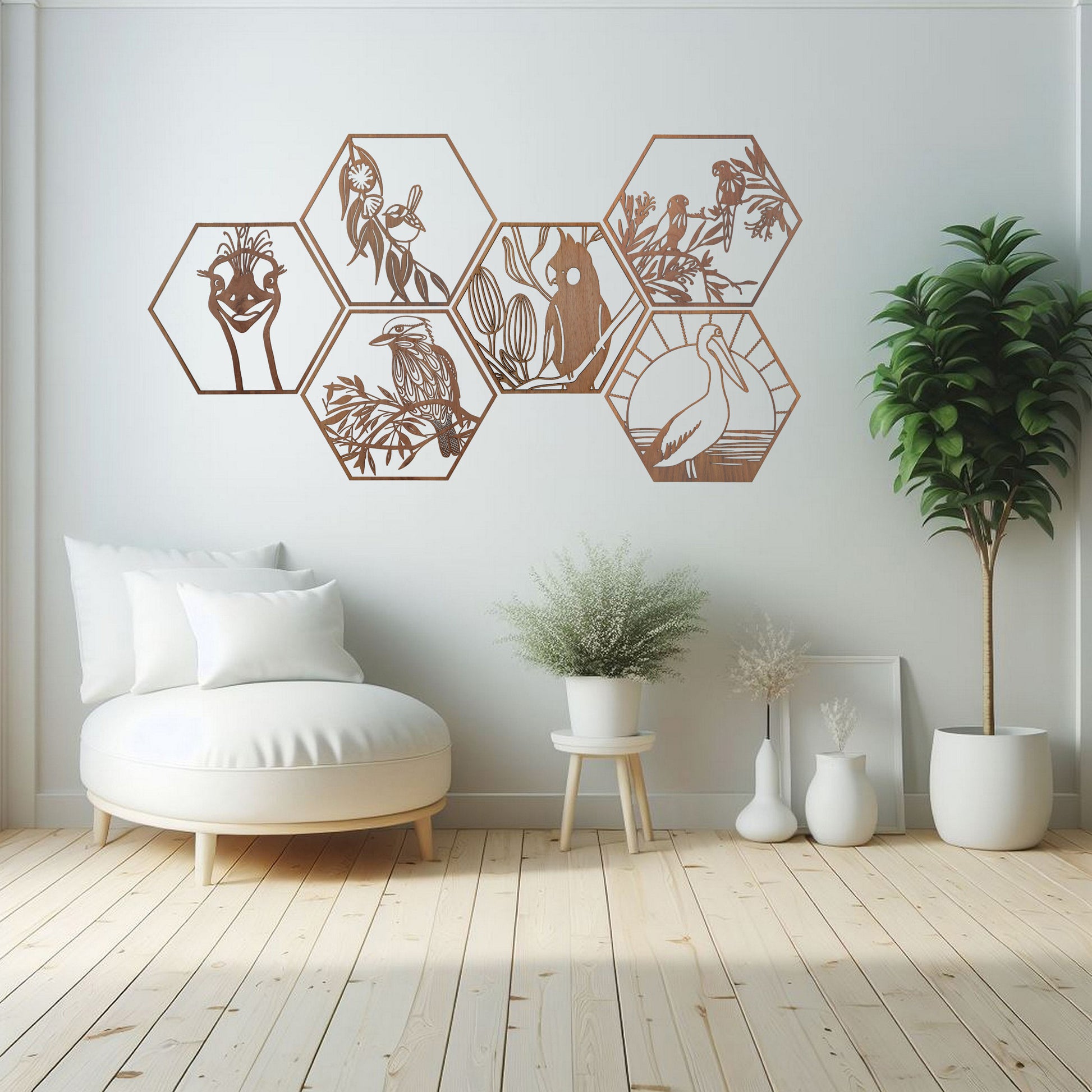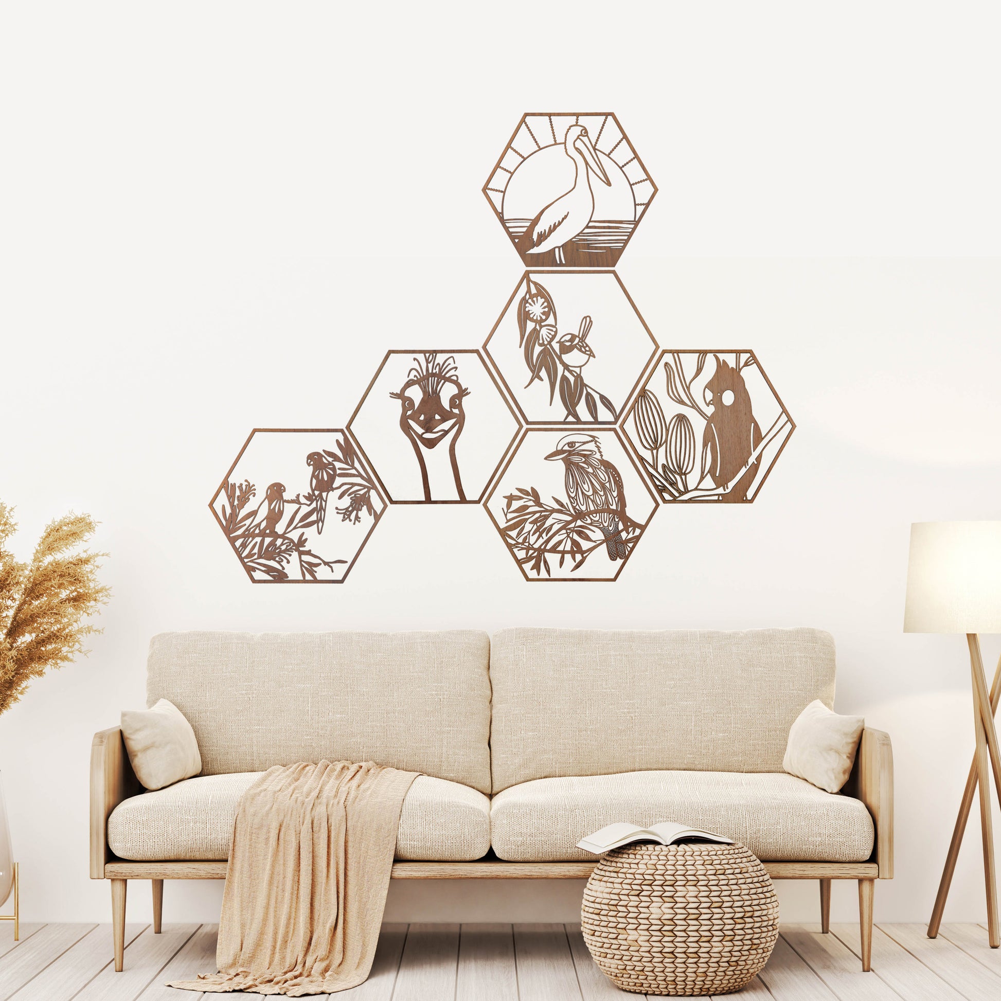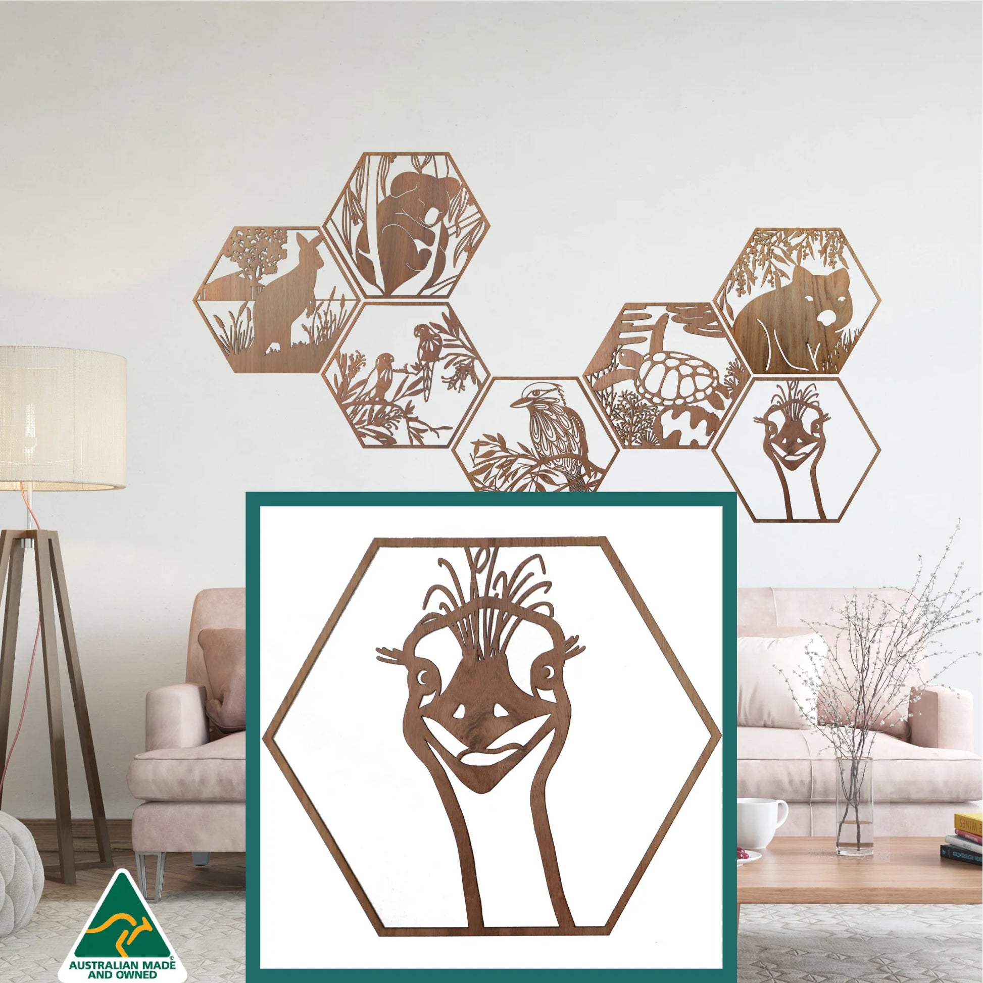 Emu Stare: Australian Timber Hexagon Wall Art