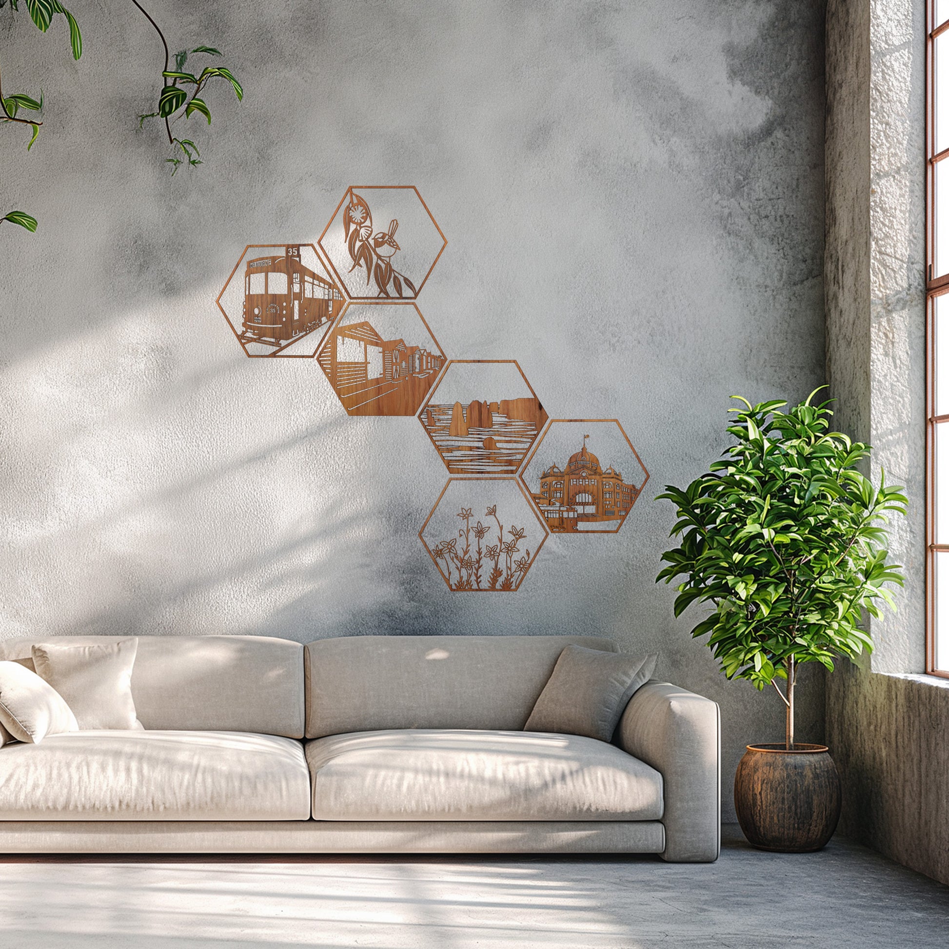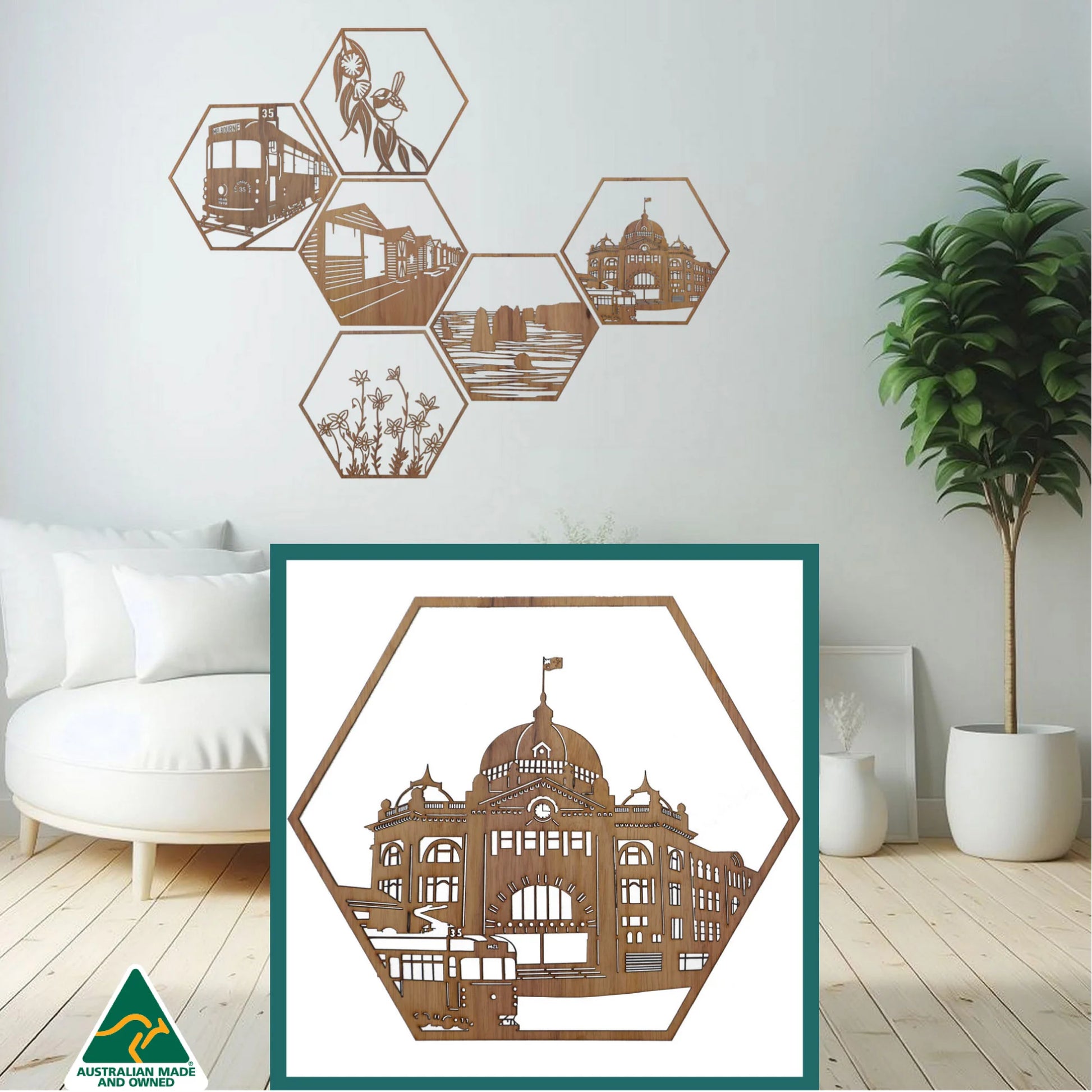Flinders Street Station: Australian Timber Hexagon Wall Art