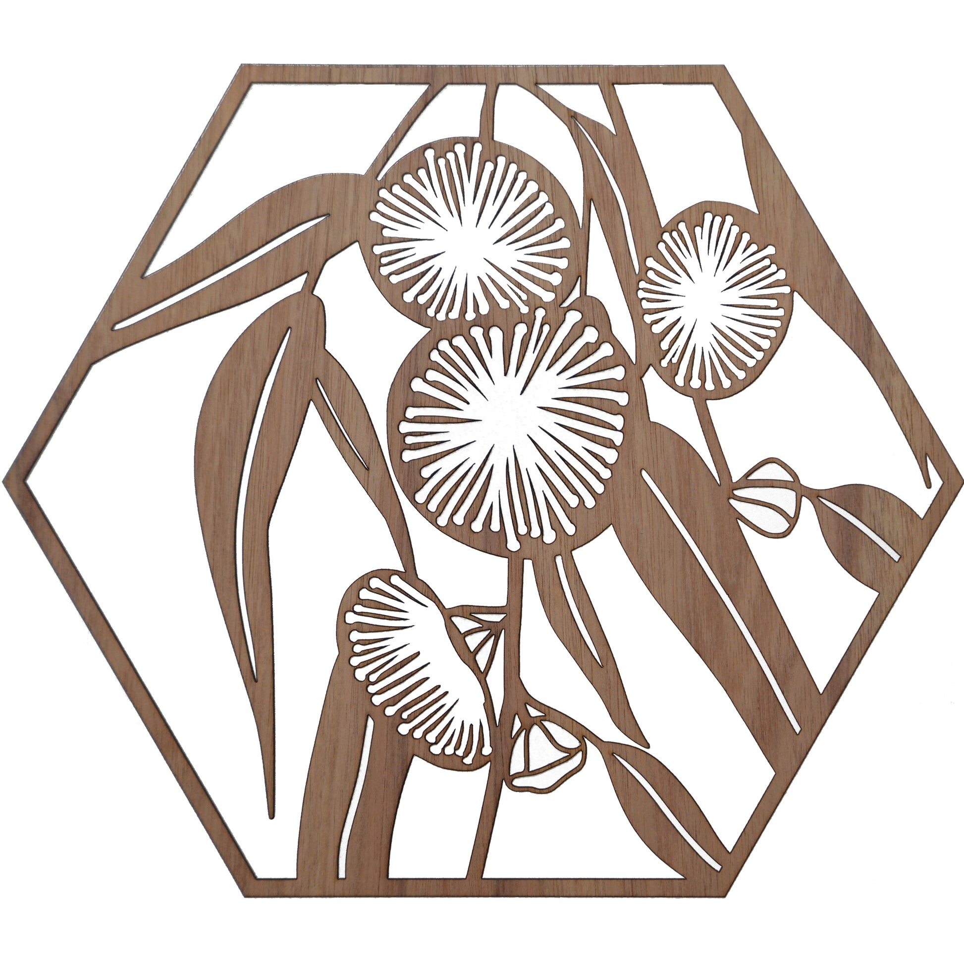Flowering Bluegum: Australian Timber Hexagon Wall Art