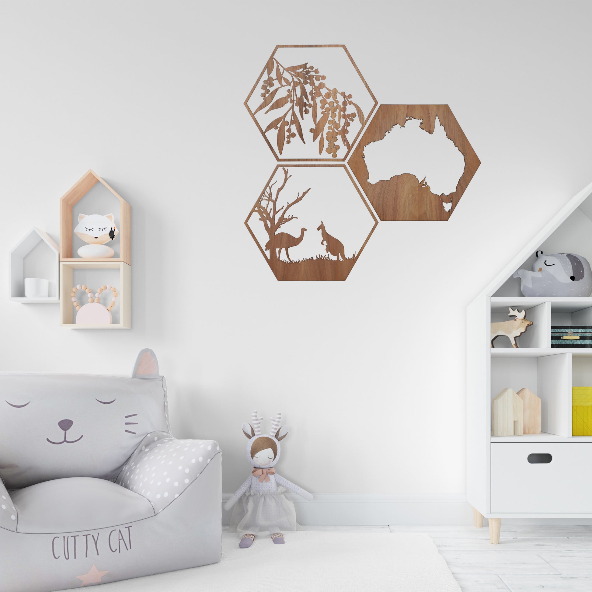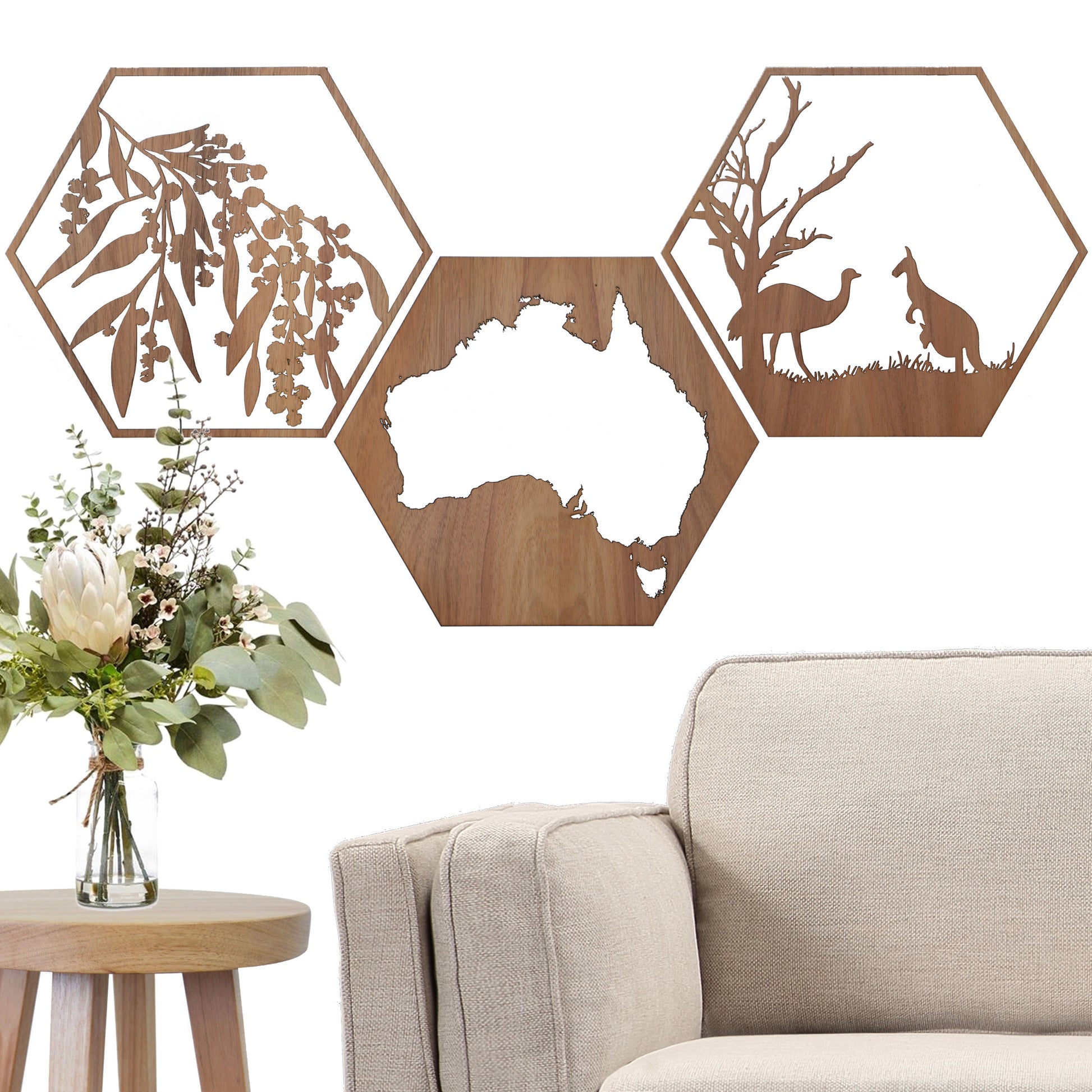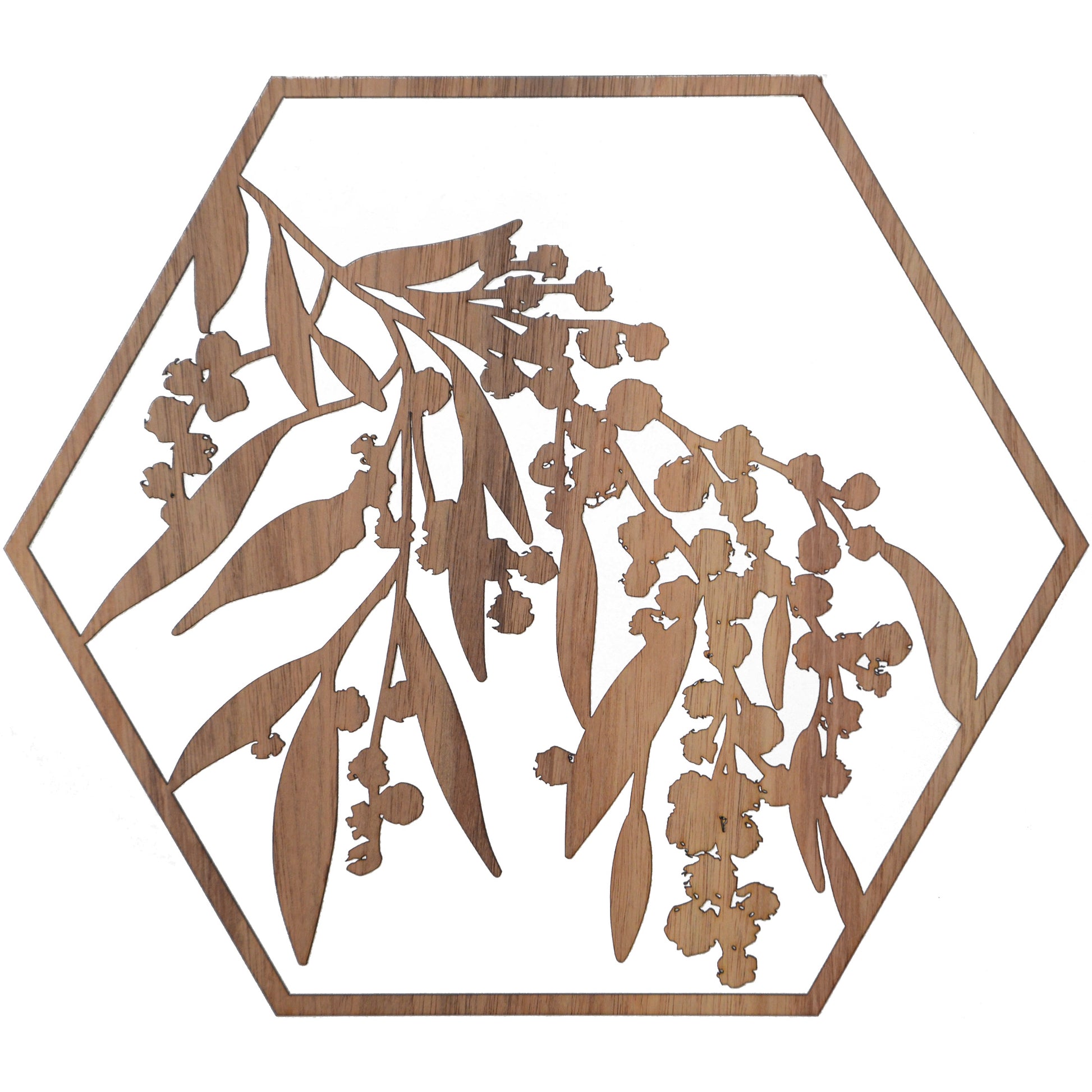 Flowering Wattle: Australian Timber Hexagon Wall Art