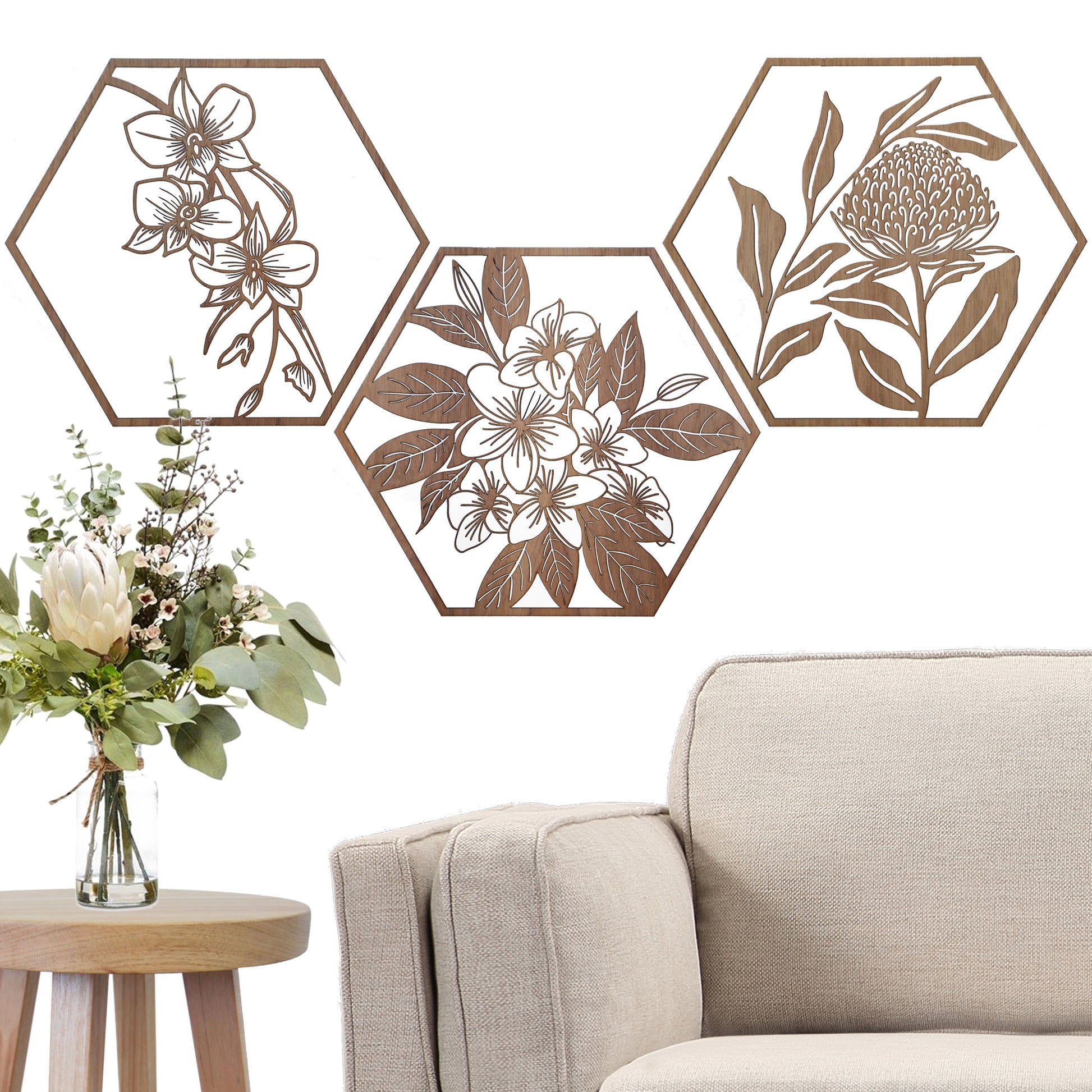Frangipani – Australian Timber Hexagon Wall Art