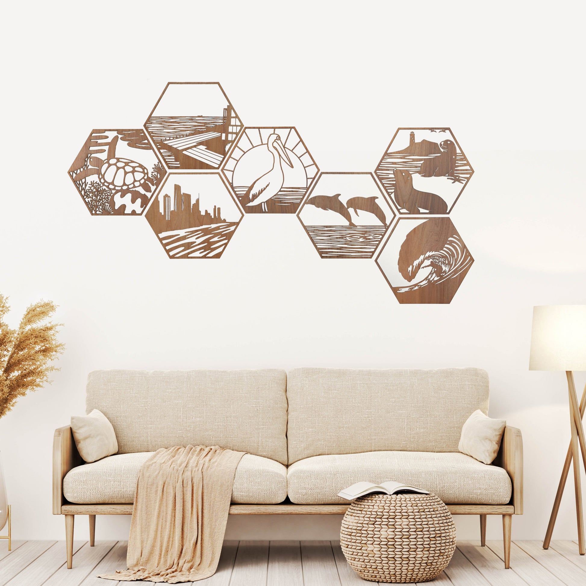 Giant Sea Turtle: Australian Timber Hexagon Wall Art