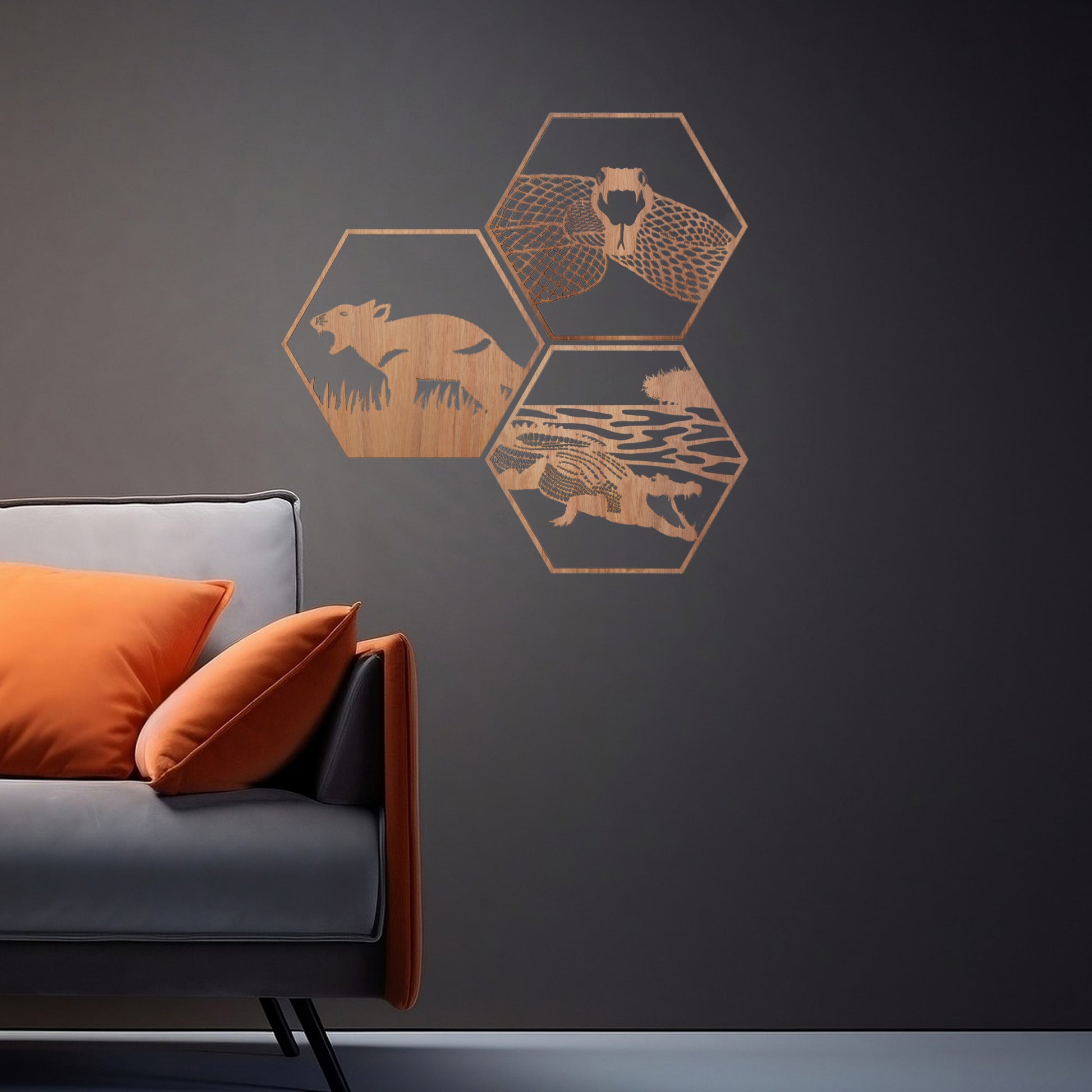 Inland Taipan Snake: Australian Timber Hexagon Wall Art