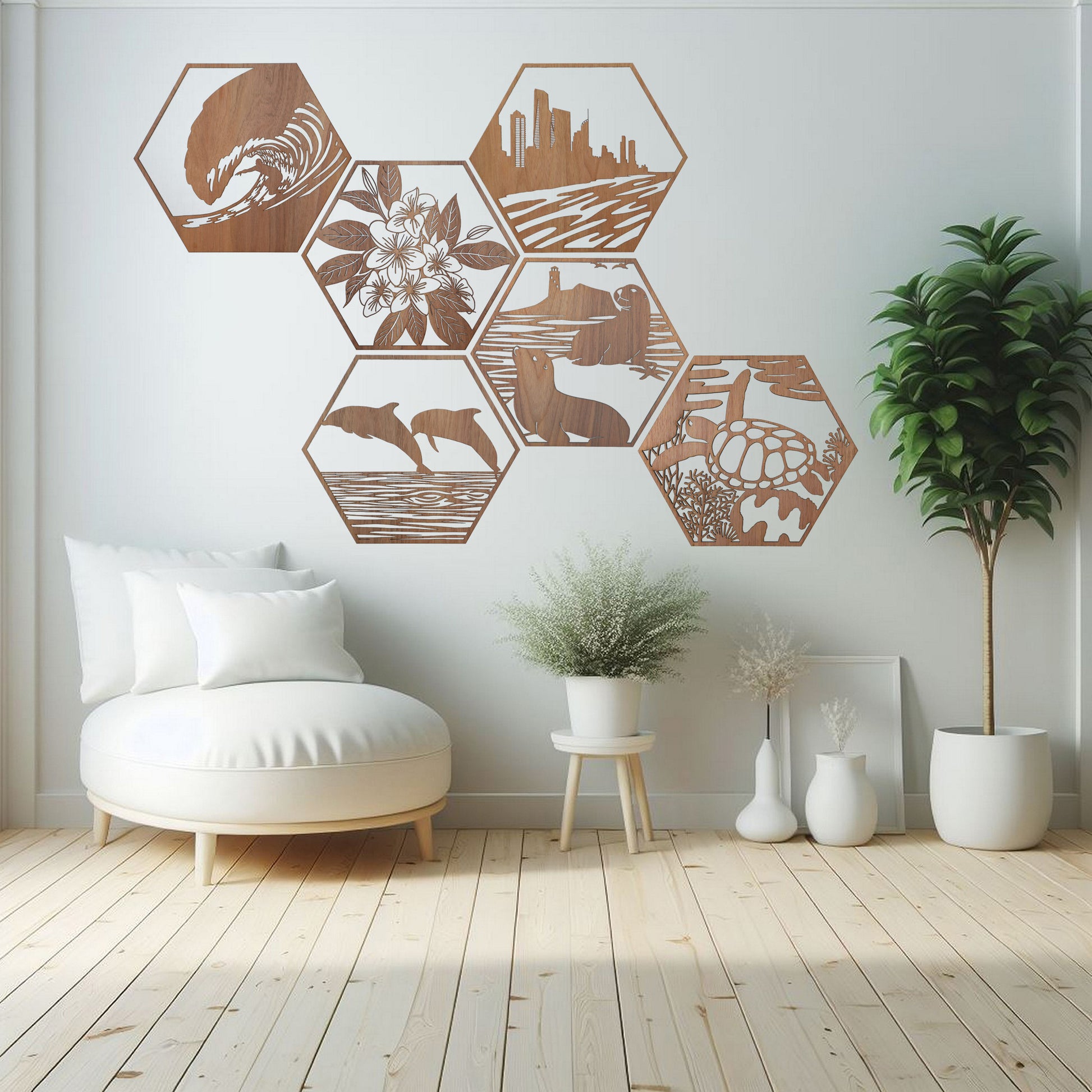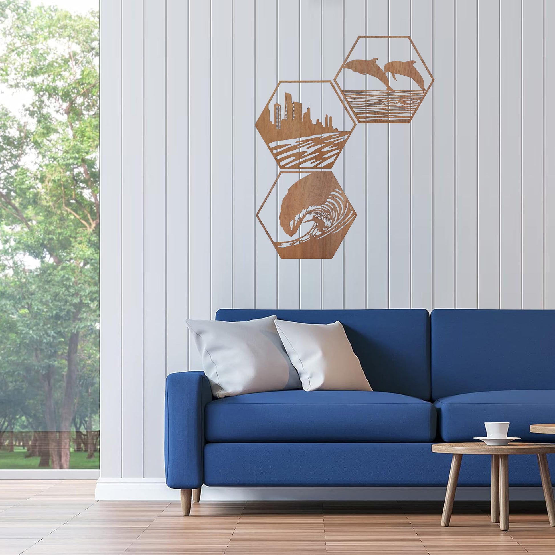 Jumping Dolphins: Australian Timber Hexagon Wall Art