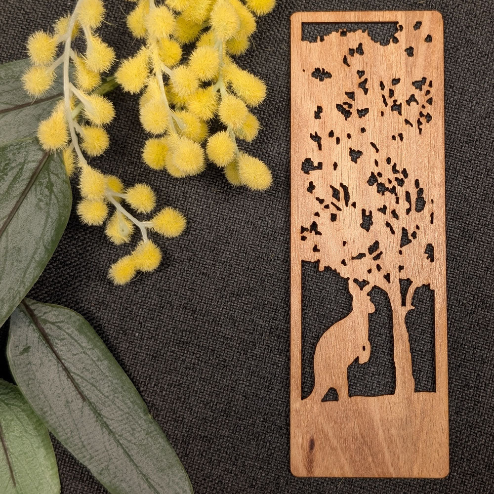 Lonely Kangaroo: Australian Wooden Bookmark
