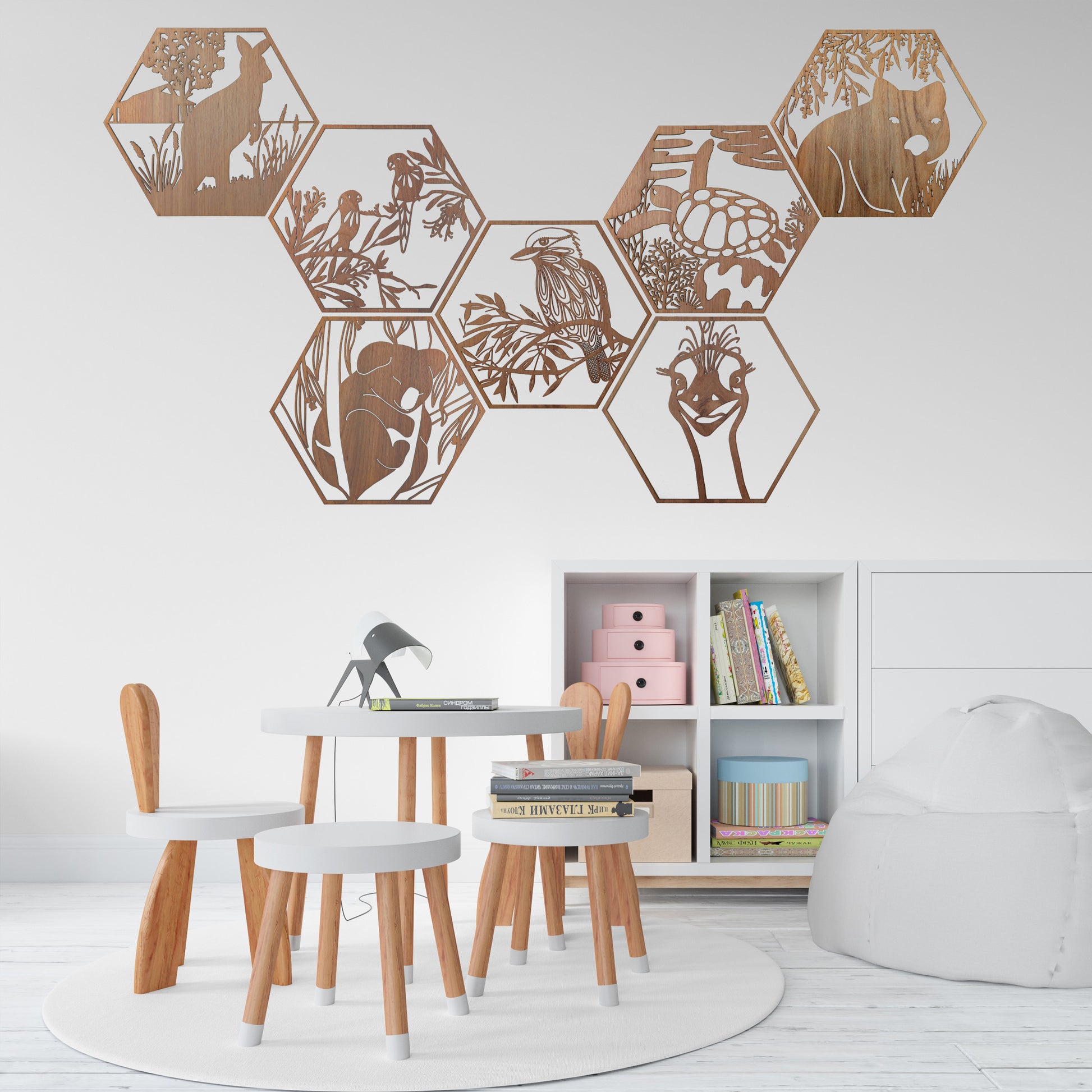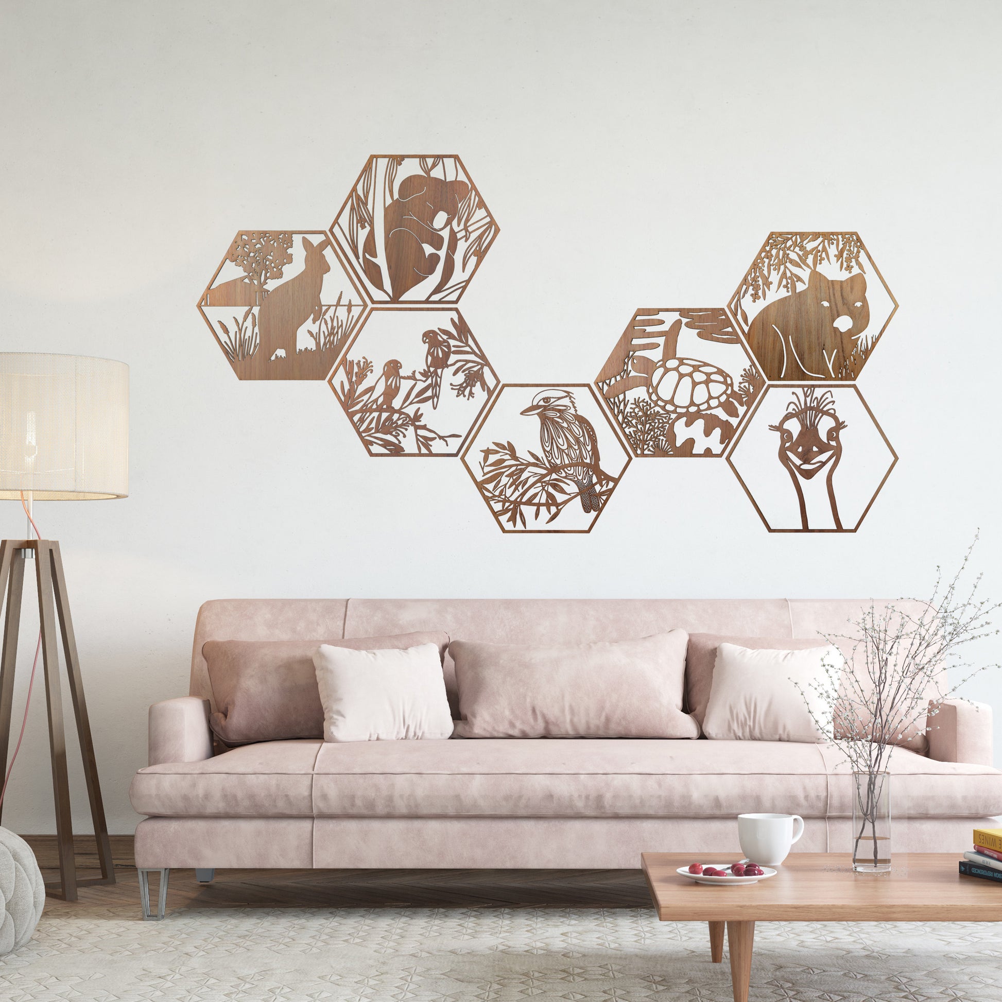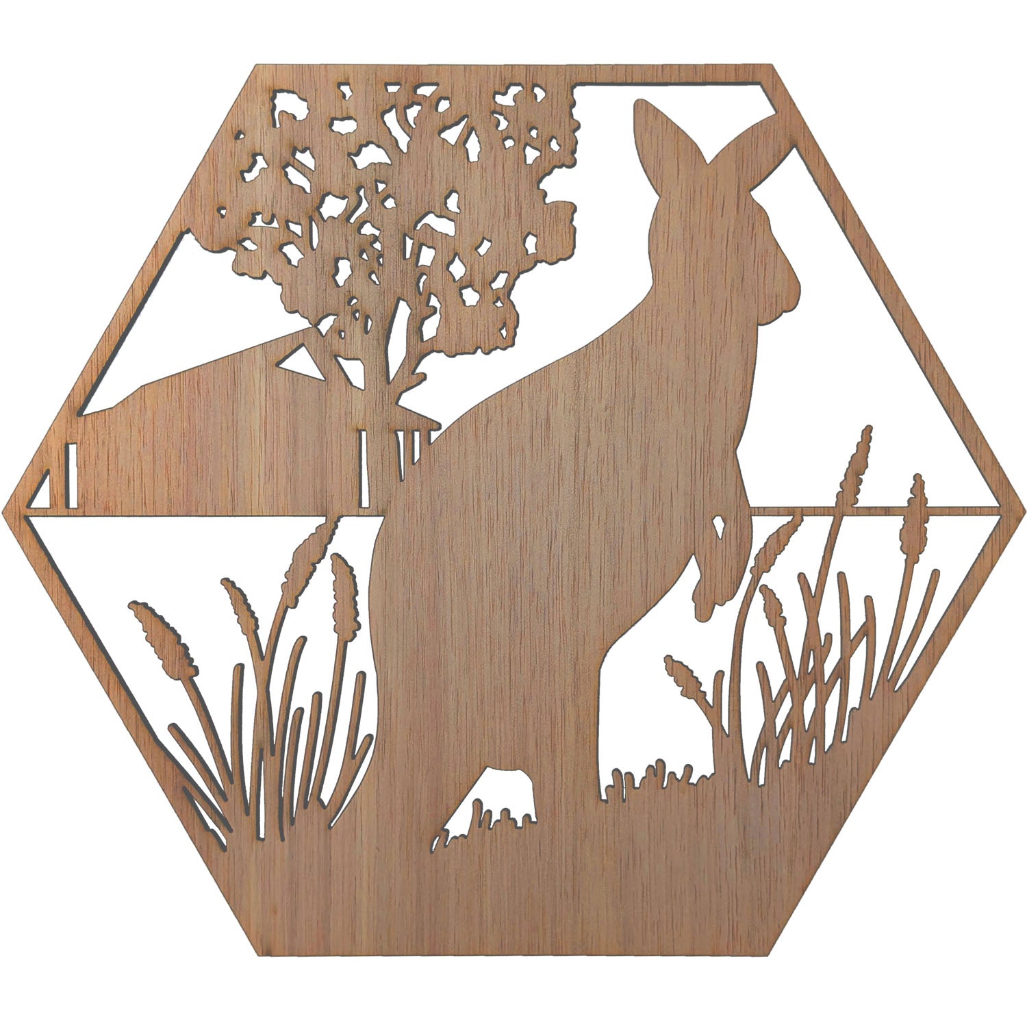 Outback Kangaroo: Australian Timber Hexagon Wall Art