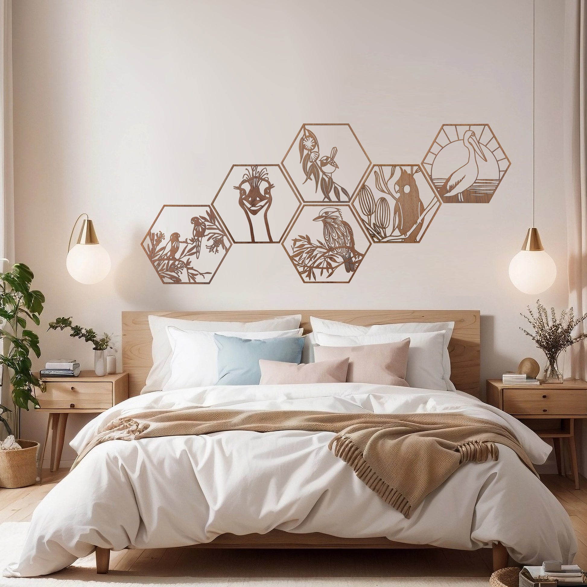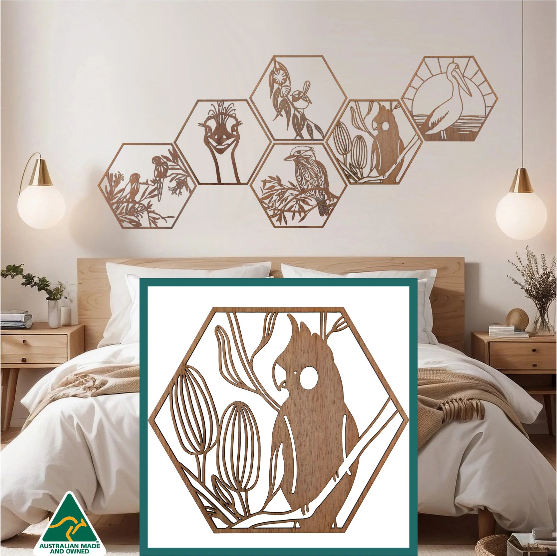 Perched Black Cockatoo: Australian Timber Hexagon Wall Art