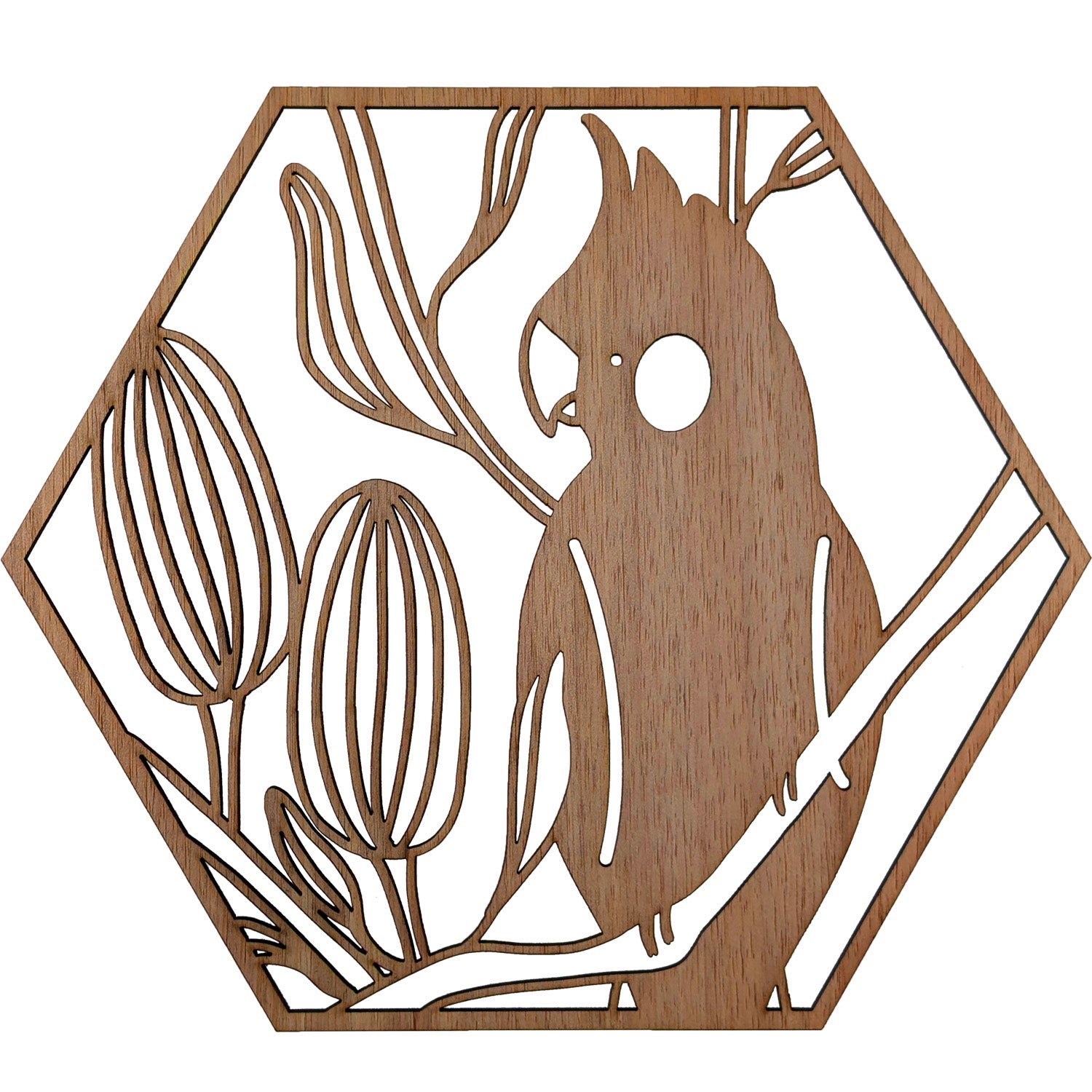Perched Black Cockatoo – Australian Timber Hexagon Wall Art