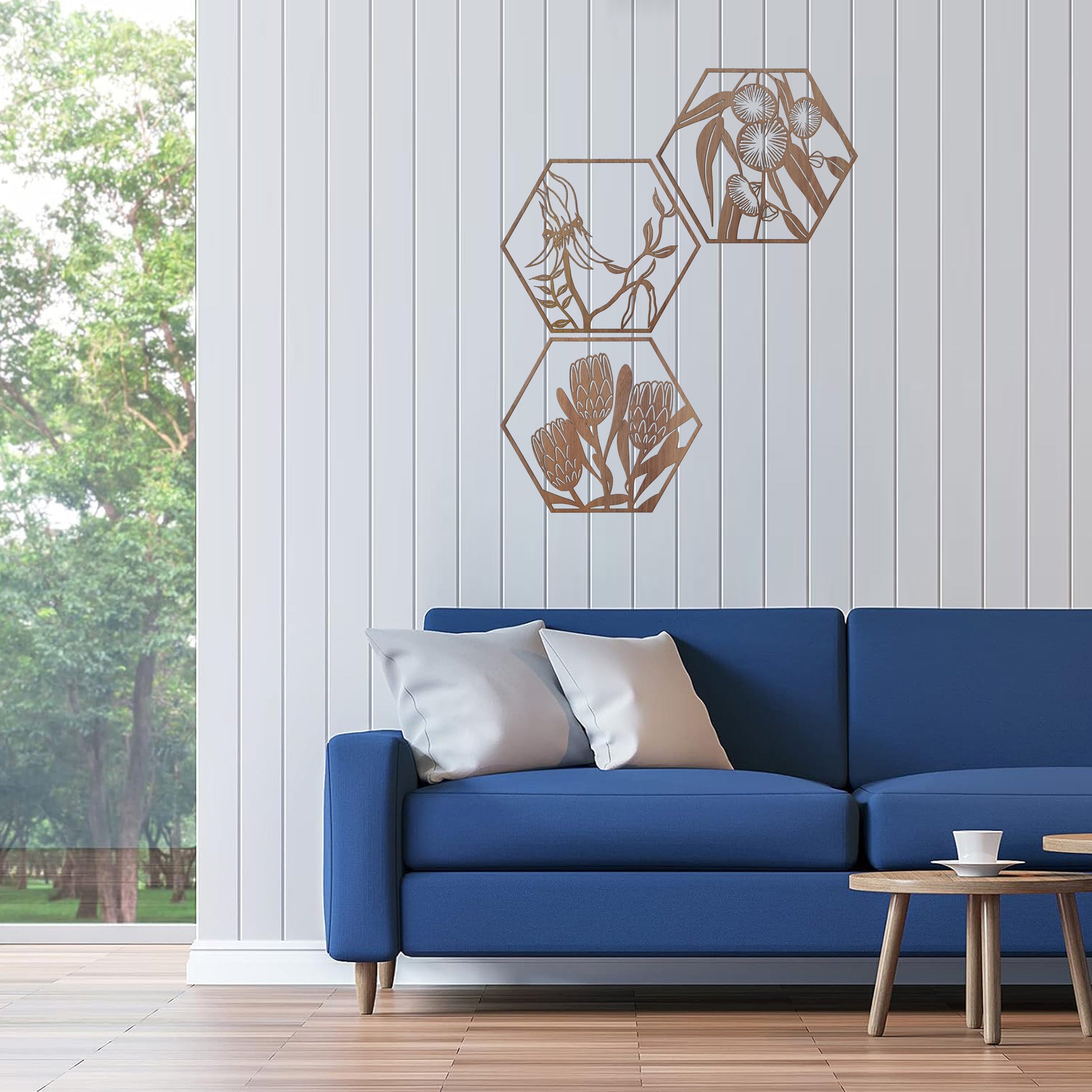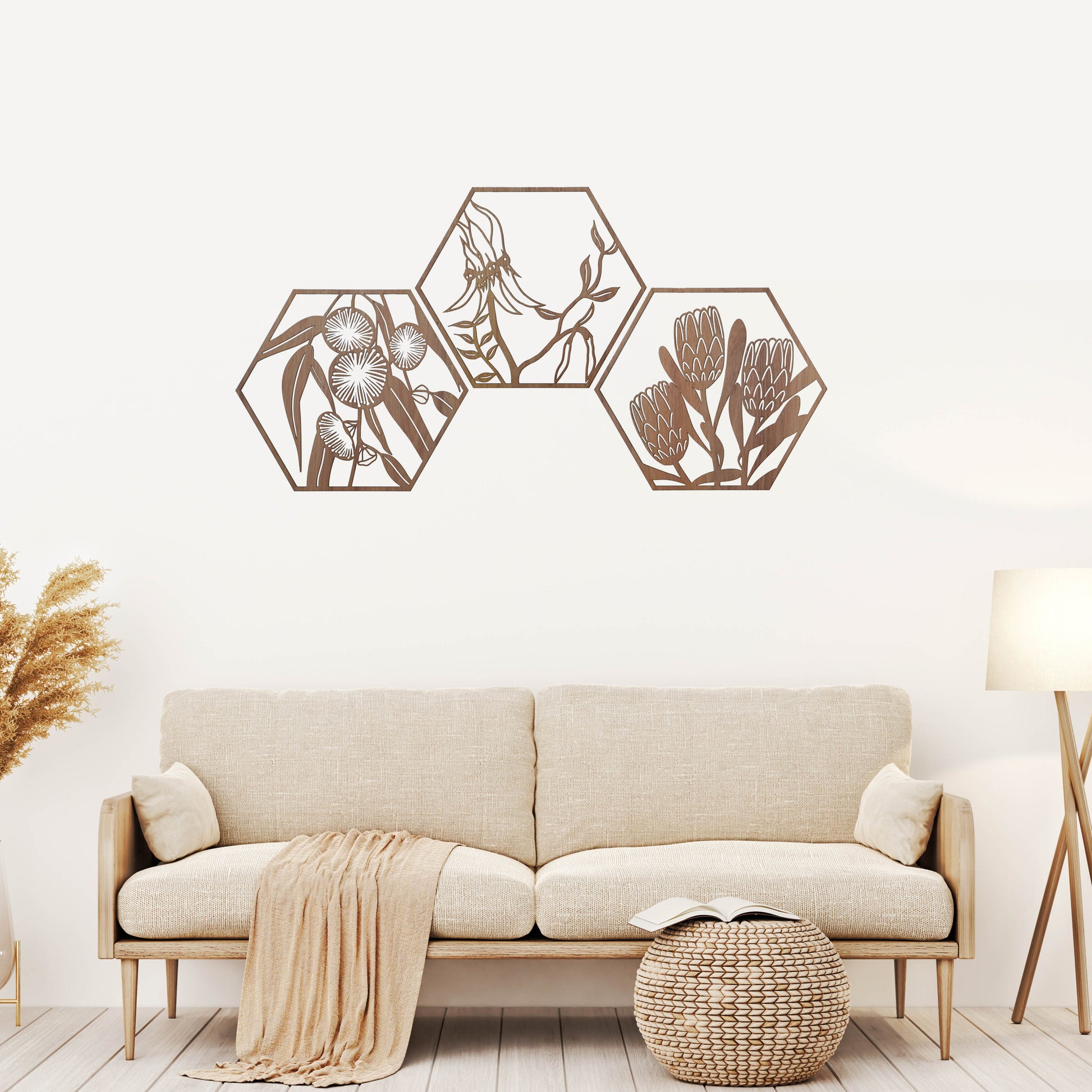 Protea Flowers: Australian Timber Hexagon Wall Art