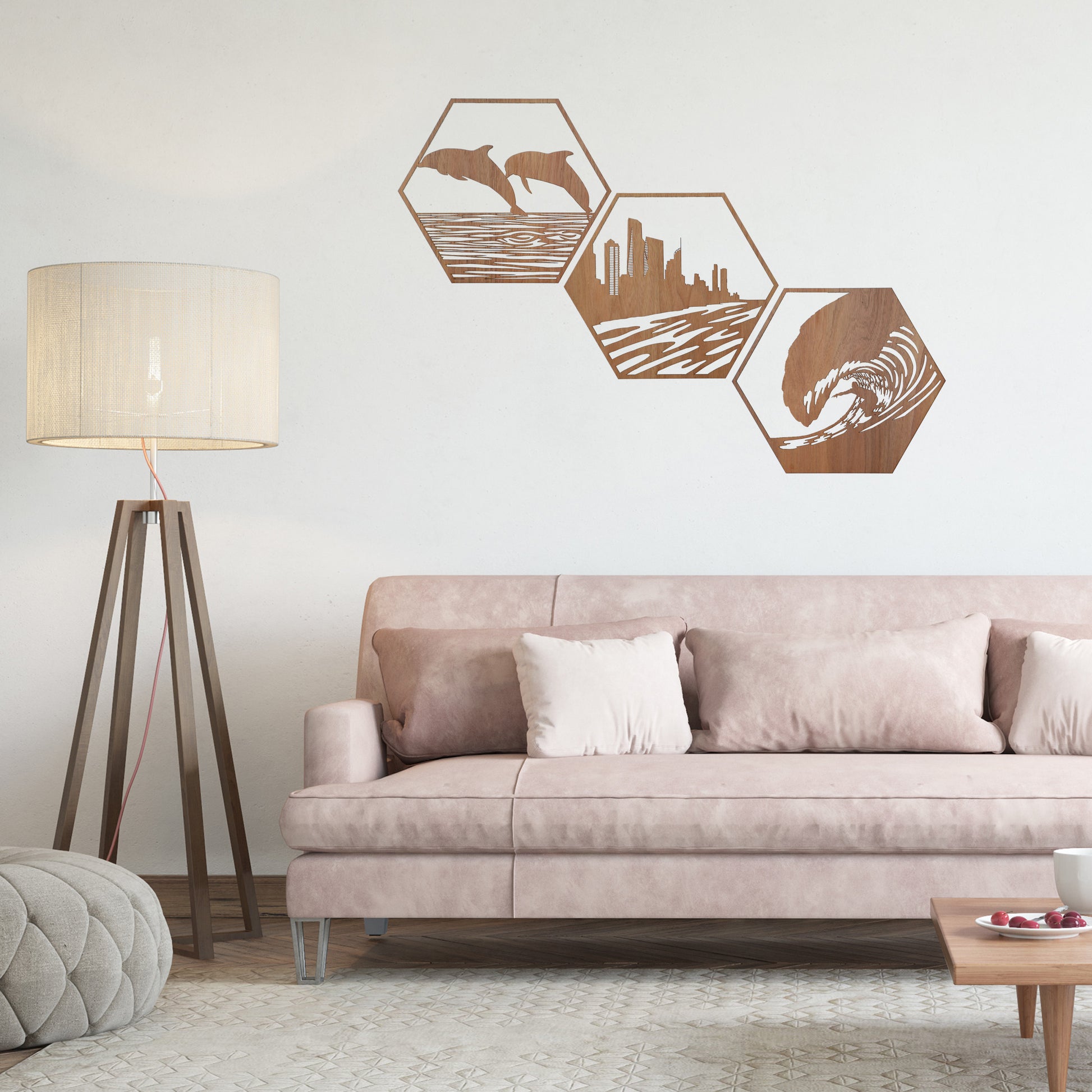 Surfing In Paradise: Australian Timber Hexagon Wall Art